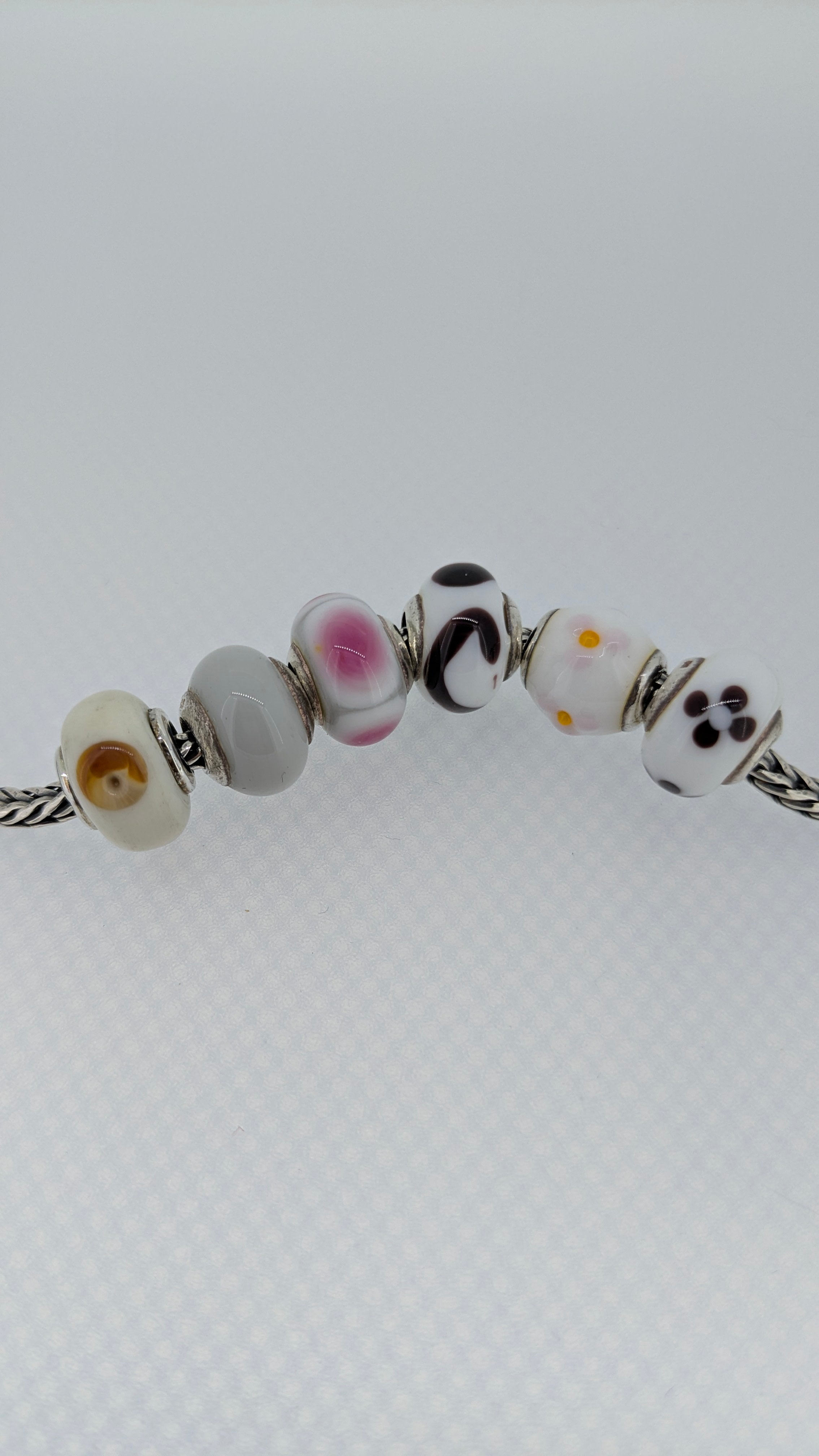 Set of 6 Murano glass and sterling silver core beads